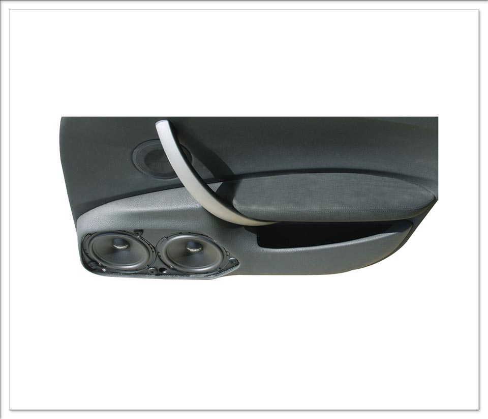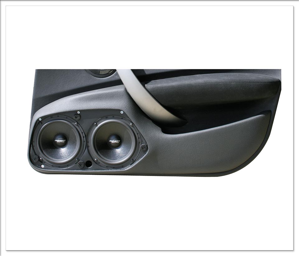Το Doorpanel της Jehnert για το BMW 1-series E87 5-door είναι κατασκευασμένο για να τοποθετηθεί 2-πλο σύστημα μπάσου στο πάνελ της πόρτας. Η μοναδική σχεδίαση του πάνελ, επιτρέπει την άψογη μουσική αναπαραγωγή των 2x165mm (6.5″) Power woofer. Το 1x100mm (4″) High-End midrange αντικαθιστά το εργοστασιακό στην ίδια θέση ενώ το 1x26mm (1″) Neodymium-Dome tweeter, που συμπληρώνει την 3-δρόμων υλοποίηση του ηχοσυστήματος, τοποθετείται στο πλαστικό “τρίγωνο” καπάκι στήριξης του καθρέπτη στην πόρτα του αυτοκινήτου.