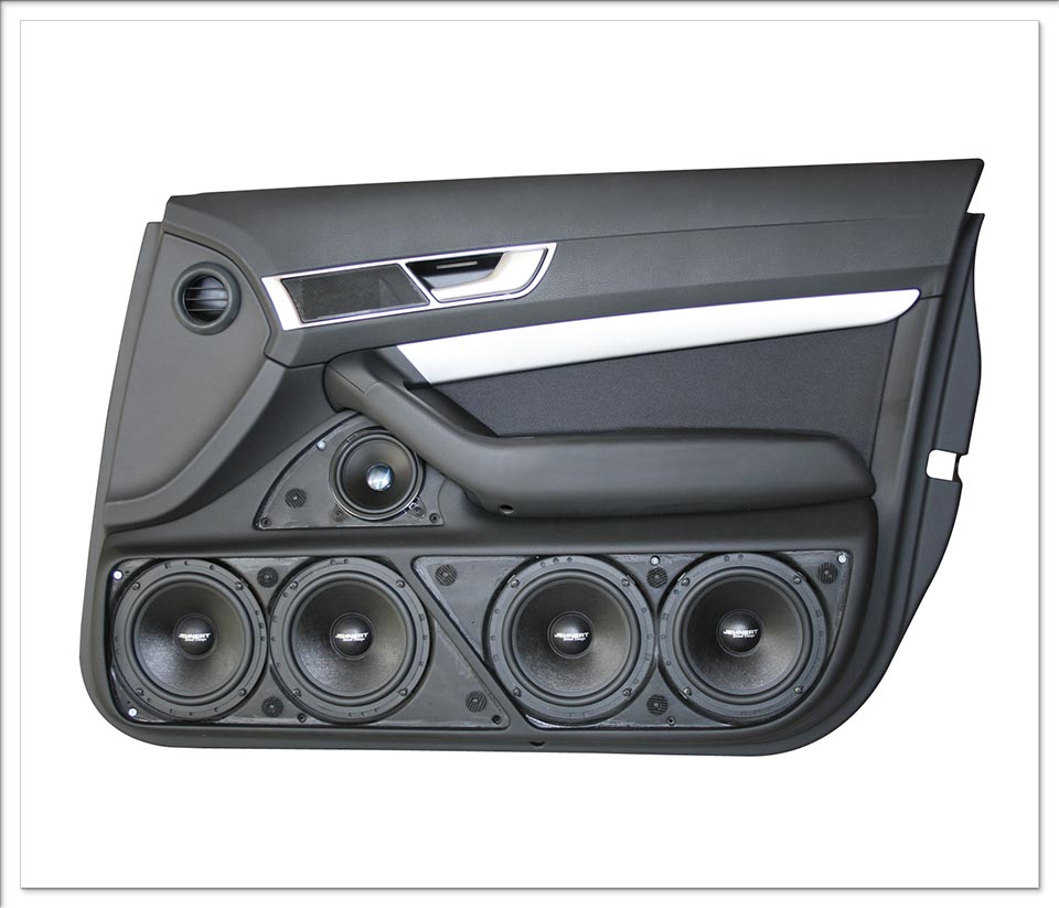 Το Doorpanel της Jehnert για το AUDI A6 (>7/2004) 4-πορτο χαρακτηρίζεται για την κομψή και μοντέρνα σχεδίαση και την εξαιρετική ποιότητα κατασκευής, ικανό να φιλοξενήσει 4x165mm (6.5″) Power Woofer και το 1x100mm (4″) high-end midrange της JEHNERT. Το midrange είναι τοποθετημένο με γωνία κλίσης, μπροστά και πάνω από τα 4 woofer έτσι ώστε να σας δίνει ένα καθαρό ακουστικό αποτέλεσμα με εξαιρετική απεικόνιση της μουσικής σκηνής.